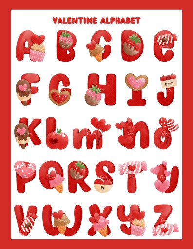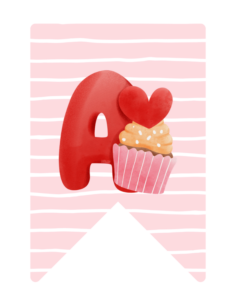 Check out the cute Valentine alphabet at Canva and create your own design! Click here to go to the Canva template with the alphabet and bunting letters from A to Z.