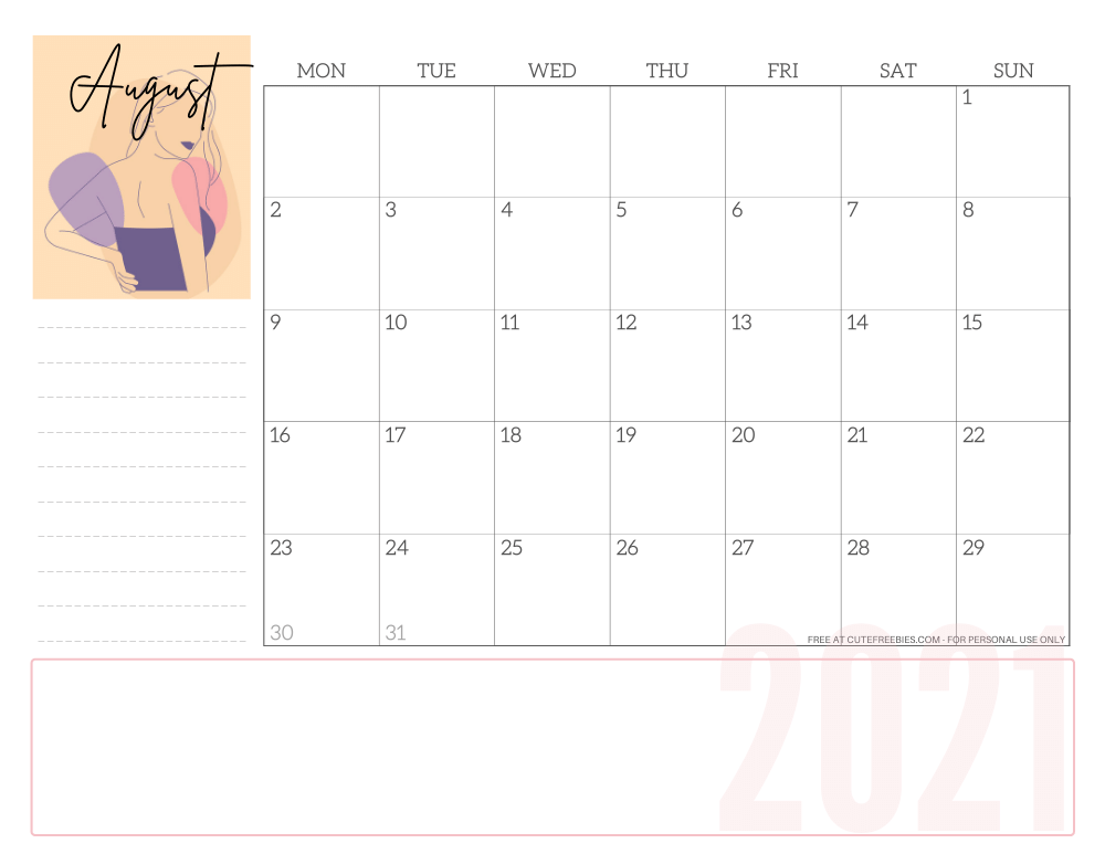 Hi friends! Here are our free printable August 2021 calendar pages for you! Copy the image and print for your personal use. You may also download the complete 2021 calendar for free. Get your favorite printable August 2021 calendar and start planning a wonderful month. You may also click the links to download the complete 2021 monthly calendar PDF file.