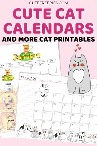 We now have a complete 2020 monthly calendar of this cute cat design! Click the image below to visit and download the complete calendar set for free. There’s also links to MORE free cat printables!