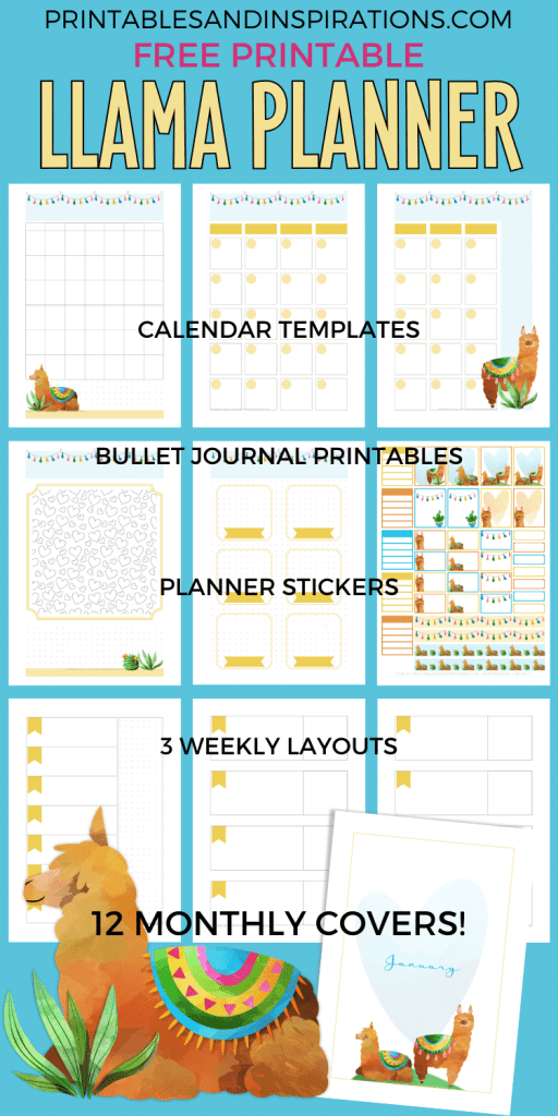 Plan for a happy month with my free printable May bullet journal PDF template! This is a free printable monthly journal template for May but you can also use it any month of the year. This month’s theme is a happy llama with flowers and cacti. Download it for free and make an A5 size planner or print as an A6 pocket planner. You may also get the free any-month template and use it anytime.