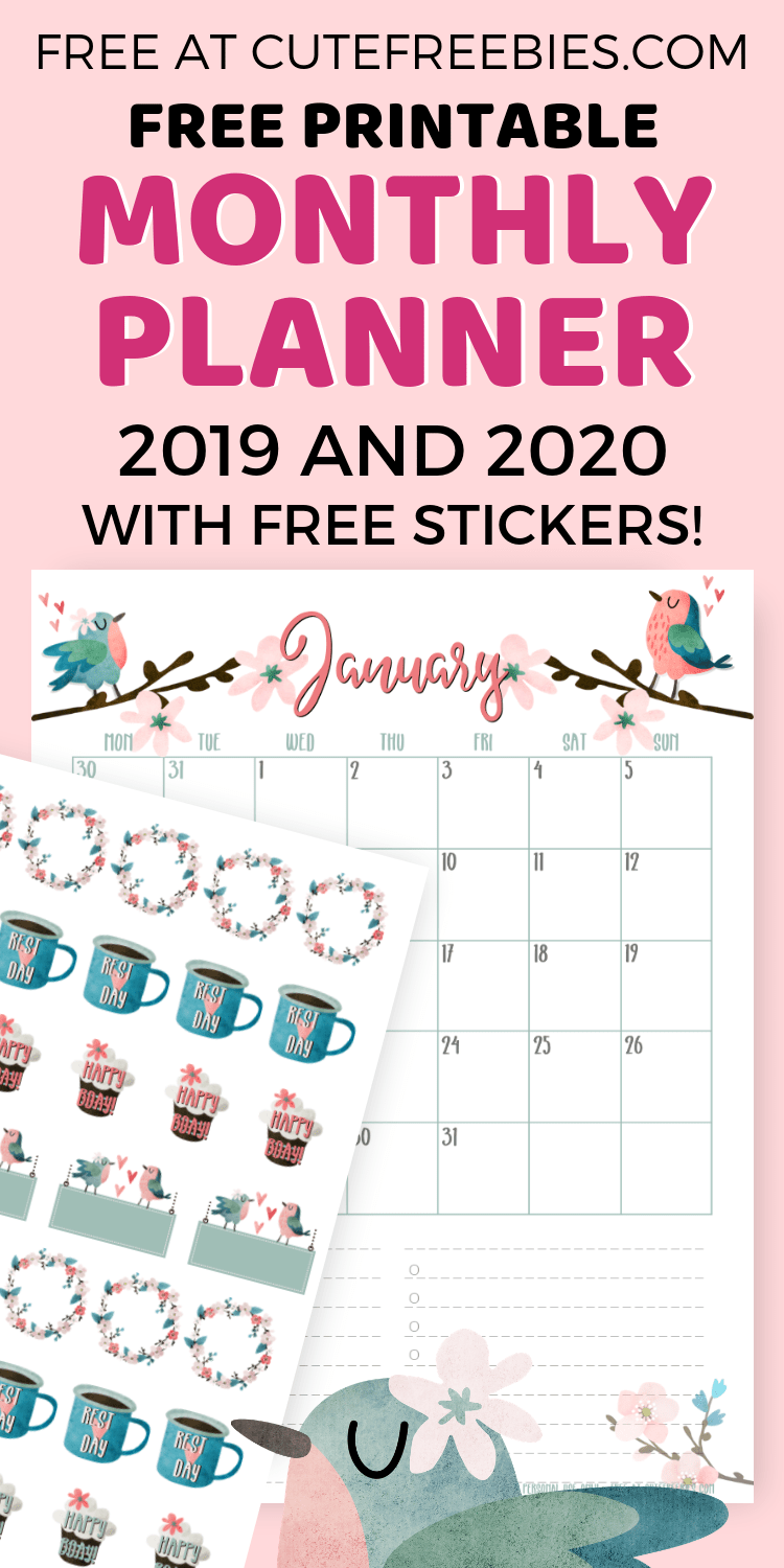 Get your free printable monthly planner 2019 / 2020 plus stickers