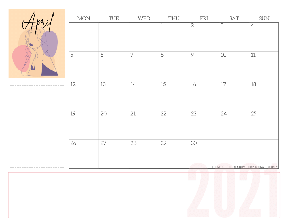 Hi friends! Here are our free printable April 2021 calendar pages for you! Copy the image and print for your personal use. You may also download the complete 2021 calendar for free. Get your favorite printable April 2021 calendar and start planning a wonderful month. You may also click the links to download the complete 2021 monthly calendar PDF file.
