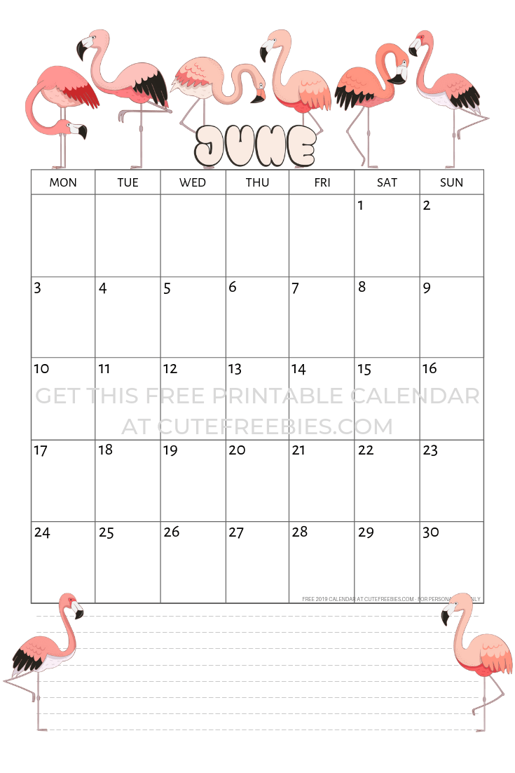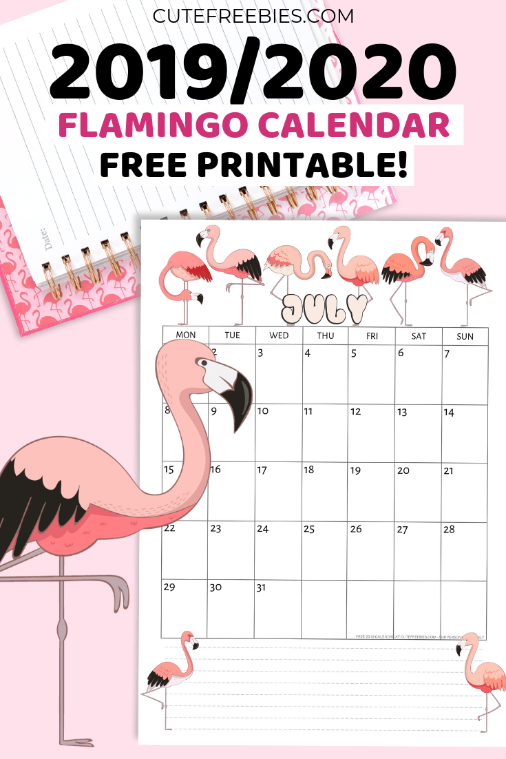 Black and pink flamingos in your area! This super cute 2019-2020 calendar printable is here to make you smile. Get this free printable pink flamingo calendar or monthly planner and print for you and your kids. Choose from a Sunday or Monday start calendar and make your own pretty planner!
